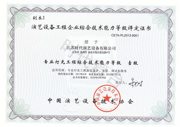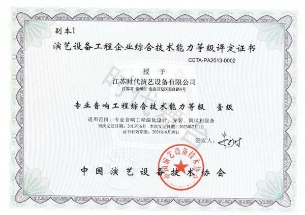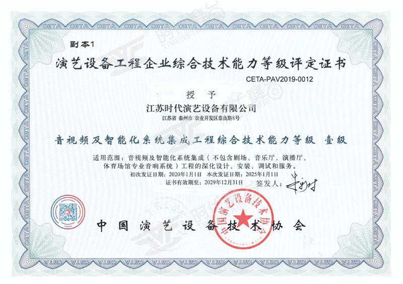 音視頻系統(tǒng)集成工程綜合技術能力等級壹級證書